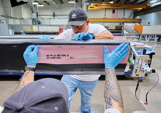Above: Van Horn Aviation design engineer Chris Gatley brought with him 13 years of experience when he joined the company in 2019, including work on main-rotor blades for the AH-64D/E Apache, foreground. All photos by Mark Bennett What goes into making a rotor blade? A lot more than you might think. Rotor blades are designed for performance. But they are also designed to be manufactured, and how they are manufactured is probably more involved than you think. Rotorcraft blades are some of the most complex purely mechanical items on a helicopter. They might appear as a seamless piece, but their construction comprises myriad components, shaped and joined, inspected and tested. The end result must be able to endure a range of environments and abuse, survive being flung around a hub hundreds of times per minute, twisted up, then down at that same rate, while supporting its share of an aircraft ranging from less than 900 to over 120,000 lb. What is possibly the only extant set of Sikorsky S-51 main-rotor blades not mounted on a helicopter currently rests on a hangar wall at Vertical Aviation Technologies in Sanford, Florida. The blades were manufactured in 1952. Pencils to PCs, Spruce to Carbon Fiber Long before you start hammering together a rotor blade, much design work is required across manifold disciplines. At the dawn of rotary-wing flight, it made sense that existing fixed-wing airfoils, developed with pencils and slide rules, guided the design of helicopter rotor blades. Likewise, wood-and-fabric construction was the logical choice. Those airfoil designs and construction techniques were found wanting, however. For instance, air pressure changes in hollow, fabric-covered trailing edges would change performance during flight, and moisture from rain, or even just humidity, could alter the weight of blades disproportionately on a single helicopter. Moreover, the inherent difficulty of making every blade for a specific aircraft model the same size, shape, and weight was so severe that blades had to be installed and, when needed, replaced in complete sets. Soon, legacy designs yielded to the results of intensive (and ongoing) research into not just the shape of airfoils—the 2D cross section—but also a full 3D optimization of the blade from root to tip, calculated with computers and verified in wind tunnels. Construction materials and manufacturing processes progressed similarly. (See “Airfoil Design,” at bottom of article, for more on airfoils.) The result? The designs, materials, and manufacturing processes for helicopter rotor blades, main and tail, followed the same path forged by makers of airplanes: better-performing, longer-lasting, more-consistent wings. As It Ever Was Vertical Aviation Technologies S-52L Main Rotor Blade Airfoil: NACA 0014 Length: 15′7″ (4.75 m) Weight: 40 lb. (18.1 kg) Number of Components: ≈ 138 Manufacturing time: 79 hours over 18 days Vertical Aviation Technologies has been building kit versions of the Sikorsky S-52 helicopter, including the main-rotor blades, for 30 years in their Sanford, Florida, facility. The S-52 blade assembly and balancing room at Vertical Aviation Technologies. The aircraft sported the first all-metal blades on an American helicopter, a design later revised for more consistent manufacturing, better performance, and longer life. The blades now comprise about 138 components, most of them manufactured on-site by Vertical Aviation, and all of them assembled, painted, and balanced per the company’s FAA-approved process specifications. Those components include an extruded aluminum spar, which also functions as the leading edge; trailing-edge pockets of aluminum sheet (15 per blade in three different configurations); phenolic spacers; custom blade-balancing hardware; and a steel cuff with a unique threaded collar for attaching the blade to the rotor head. There have been other improvements over the decades, mostly in adhesives and paint, but the basic design remains safe and effective. Beneath the end cap on each blade is this blade balance weight system. The root end of two S-52L main-rotor blades, the lower one with just the pocket attached, the upper one complete with its unique threaded cuff nut for attaching the blade to the rotor head. Trailing-edge pockets awaiting incorporation into blades. Everything Old Is New Again Van Horn Aviation Bell 206L Main Rotor Blade Airfoil: NASA RC(4)-10 Length: 17′6″ (5.28 m) Weight: 96.9 lb. (43.95 kg) Number of Components: 316 Manufacturing Time: 240 hours over 40 days When Van Horn Aviation decided to design replacement main-rotor blades for Bell 206 helicopters, they opted for a NASA airfoil and modern materials. The result is performance that matches or surpasses that of the factory blade, with a service life four times the original’s. Technicians at Van Horn Aviation, on the left, piece together plies of carbon fiber and other materials for Bell 206 tail-rotor blades, and on the right, lay up a main-rotor blade for the same aircraft model. The Van Horn Aviation blade is seriously more complex than its sleek exterior might suggest. Beneath the paint and behind that full-length abrasion strip are layers of precisely laid carbon-fiber fabric of varying formulations, dimensions, and locations. And beneath the carbon fiber is a core of structural foam cut by computer-controlled machinery. Designing a composite blade to replace an aluminum one also requires engineering and manufacturing the components used to attach the composites to the metal root, creating and bonding the abrasion strip, incorporating track-and-balance adjustment features, etc.—every item and process different from the original. Even after the composites are laid up, the titanium machined and coated, and all the components bonded and cured in an autoclave, ahead are still final machining, painting, and quality control. No wonder it takes so long (nearly seven weeks, start to finish) to make a blade! Titanium root f