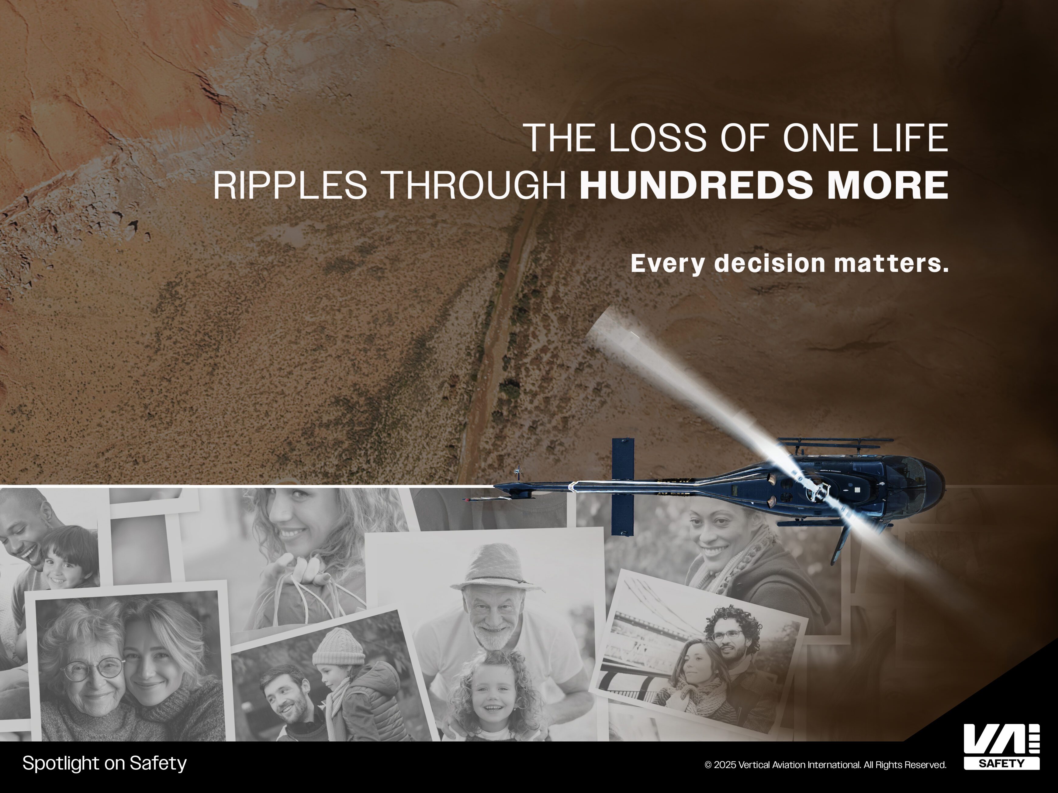 Watch Video | Download Poster | View Article Every helicopter accident has the potential not only to claim lives but to impact a wide circle of people connected to those killed. In this Spotlight on Safety, Jim Bates, an advanced helicopter simulator flight instructor with FlightSafety International Defense, explains how every aviation decision matters. Because the loss of one life affects hundreds more. SOS Poster Download Poster Article VAI Spotlight on Safety: The Ripple Effect
